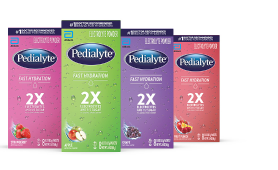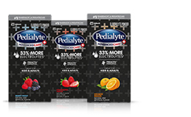 Pedialyte AdvancedCare Plus Powder Packs contain 33% more electrolytes* to help you feel better fast by replenishing more of the electrolytes you lose when dehydration† occurs on the go.