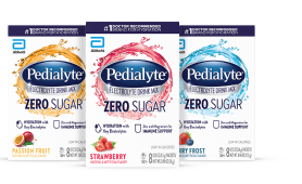 Pedialyte Electrolyte Drink Mix has zero sugar‡ and hydrates with 3 key electrolytes: sodium, chloride, and potassium.