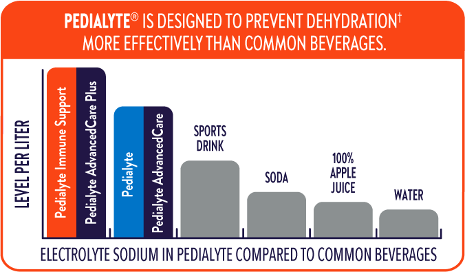 * 60 mEq sodium electrolytes per liter vs 45 mEq in original Pedialyte.