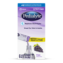 Pedialyte Powder Packs are an advanced hydration solution specially formulated with an optimal balance of sugar and electrolytes needed to help replenish vital fluids and minerals, which when lost, can lead to dehydration. Pedialyte Powder Packs can help prevent dehydration* caused by vomiting, diarrhea, exercise, travel, and heat exhaustion.